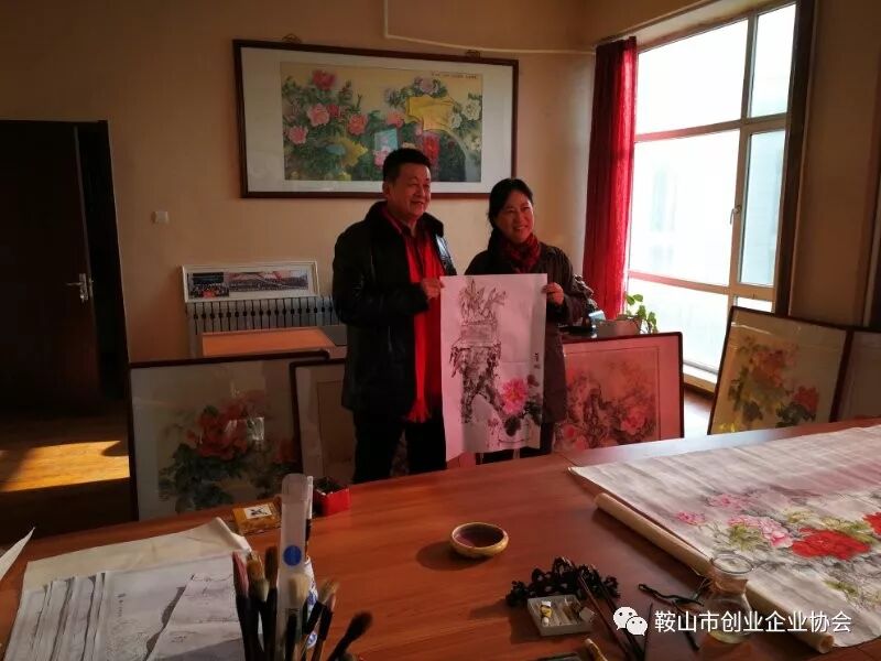 董文梅还是书画艺术爱好者,主攻工笔画。办公室里陈列了许多她的作品。董文梅将自己亲手创作的作品赠送给了会长