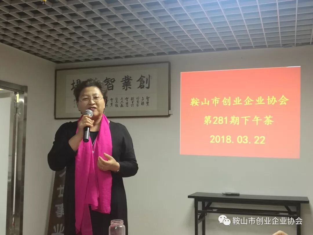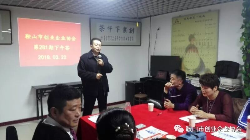 2018年3月22日鞍山市创业企业协会第281期下午茶在协会举行,全新改版的下午茶深受广大会员家人的青睐,通过采取路演的形式,全方位展示企业产品,尤其对新项目的推广宣传效果极佳。同时,加强会员之间深层次的了解,最终实现资源共享、互惠互利、共同发展。参加本次下午茶人员有常玉书,张立新,王庆莹,袁明霞,魏连鹏,孙英丽,赵立华,张学成,朴京京,崔均伟,李晶,翟丙侠,王渤予,张洋,王红娇,唐敏,孙英丽,汤晓光,刘敏,胡丽华,刘家德,韩佩君,安静,安涛