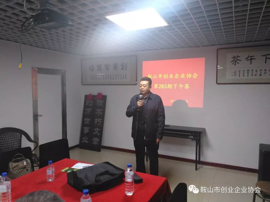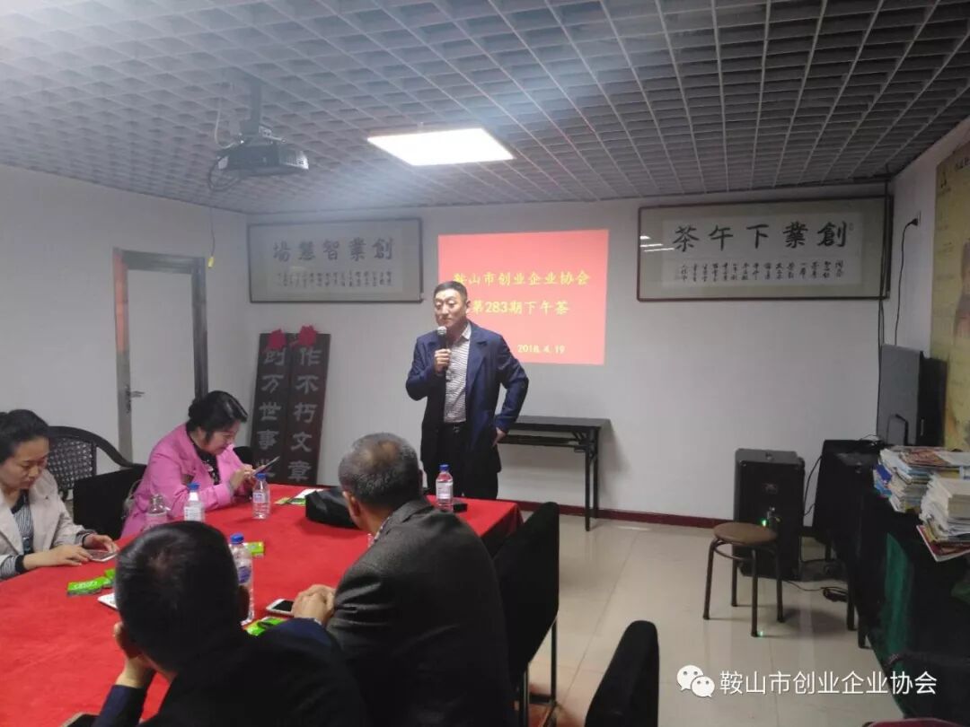 2018年4月19日鞍山市创业企业协会第283期下午茶在协会举行,全新改版的下午茶深受广大会员家人的青睐,通过采取路演的形式,全方位展示企业产品,尤其对新项目的推广宣传效果极佳。同时,加强会员之间深层次的了解,最终实现资源共享、互惠互利、共同发展。参加本次下午茶人员有常玉书,魏连鹏,赵立华,崔均伟,张洋,王红娇,韩佩君,毕庶顺,张留纯,高威,齐舰,田俊杰,梁建平,秦浩,刘紫建