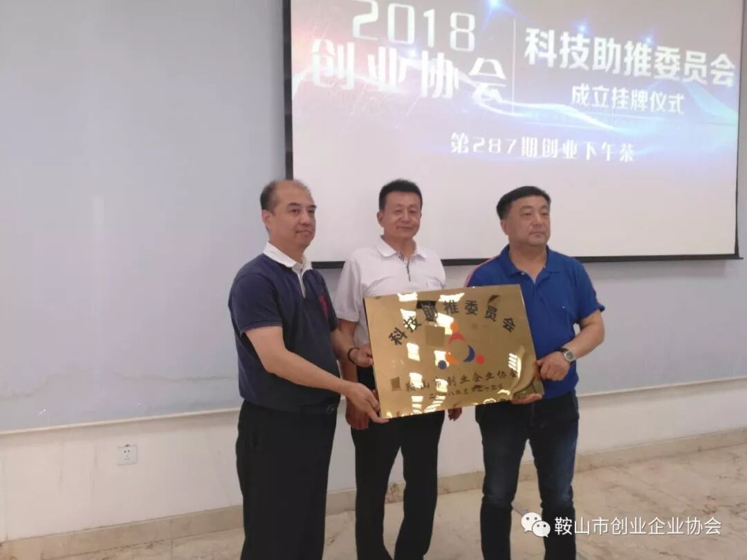 常会长为科技助推委员会授牌,科技助推委员会主任田振和常务副主任韩宝忠接牌