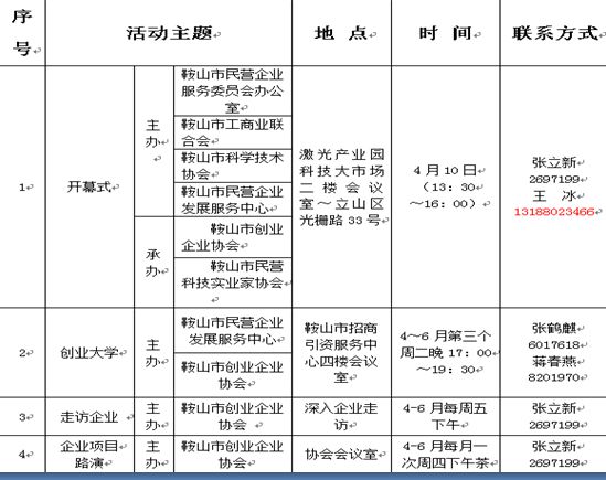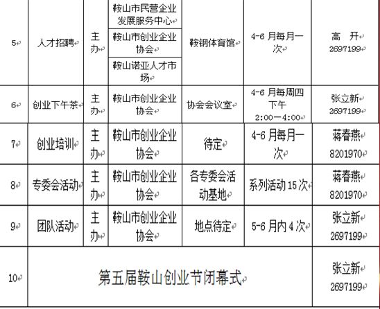 第五届鞍山创业节启动仪式己落下帷幕。本次活动主题: “大中小微企业融通发展”。创业节历时两个月到6月10日结束。计划在这两个月内围绕这个主题开展一系列的创业创新活动,计划举办35场有意义的活动,系列活动结束后在6月中旬举行闭幕式。