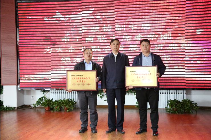 市政协副主席、市工商联主席李荣刚为融通发展先进单位“中冶焦耐”和“鞍钢建设装饰”