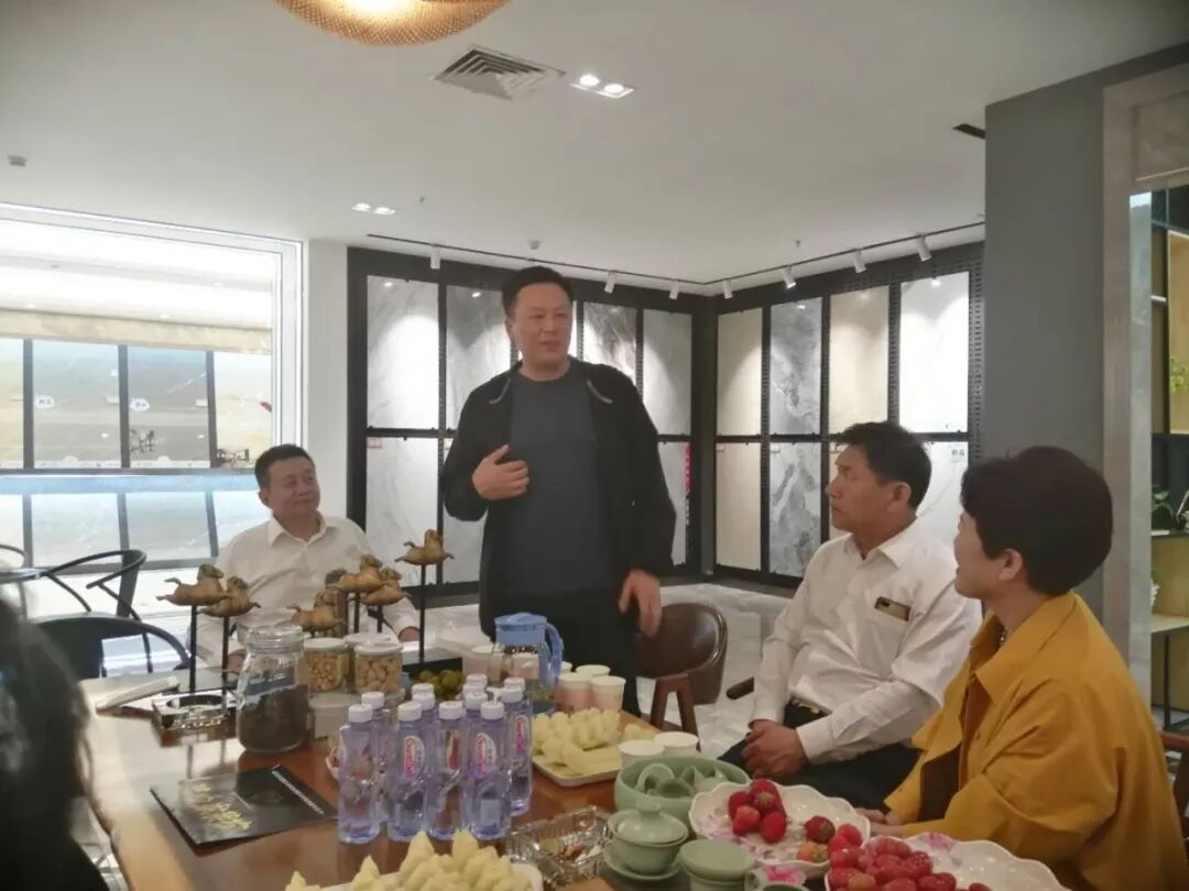 萨米特瓷砖顾洪义在向家人介绍自己的企业