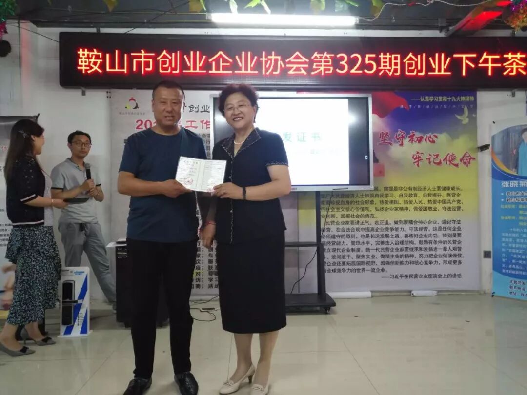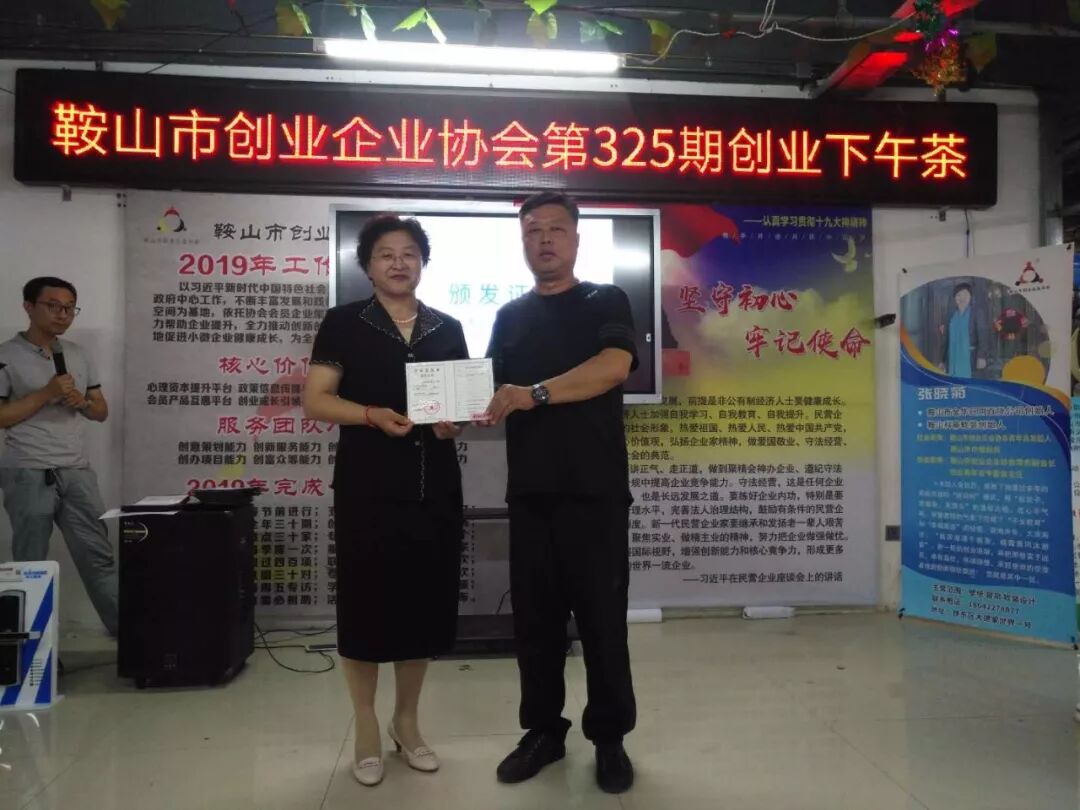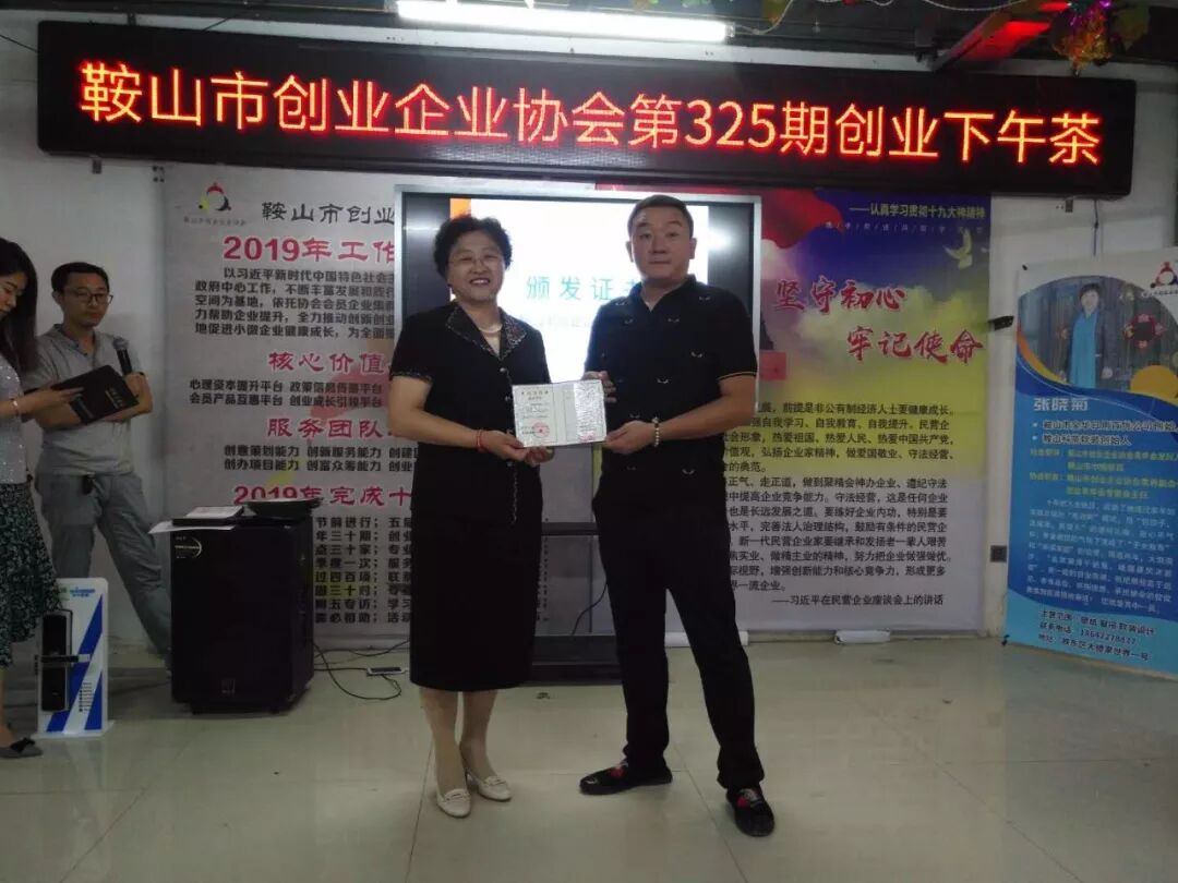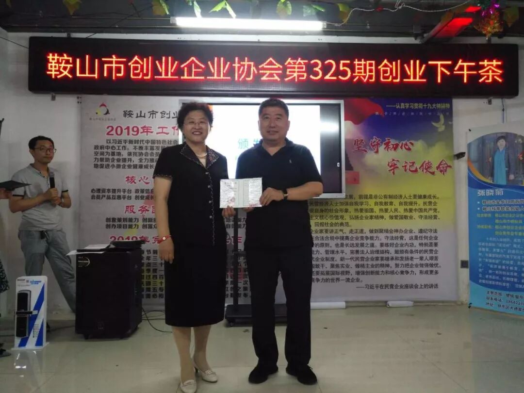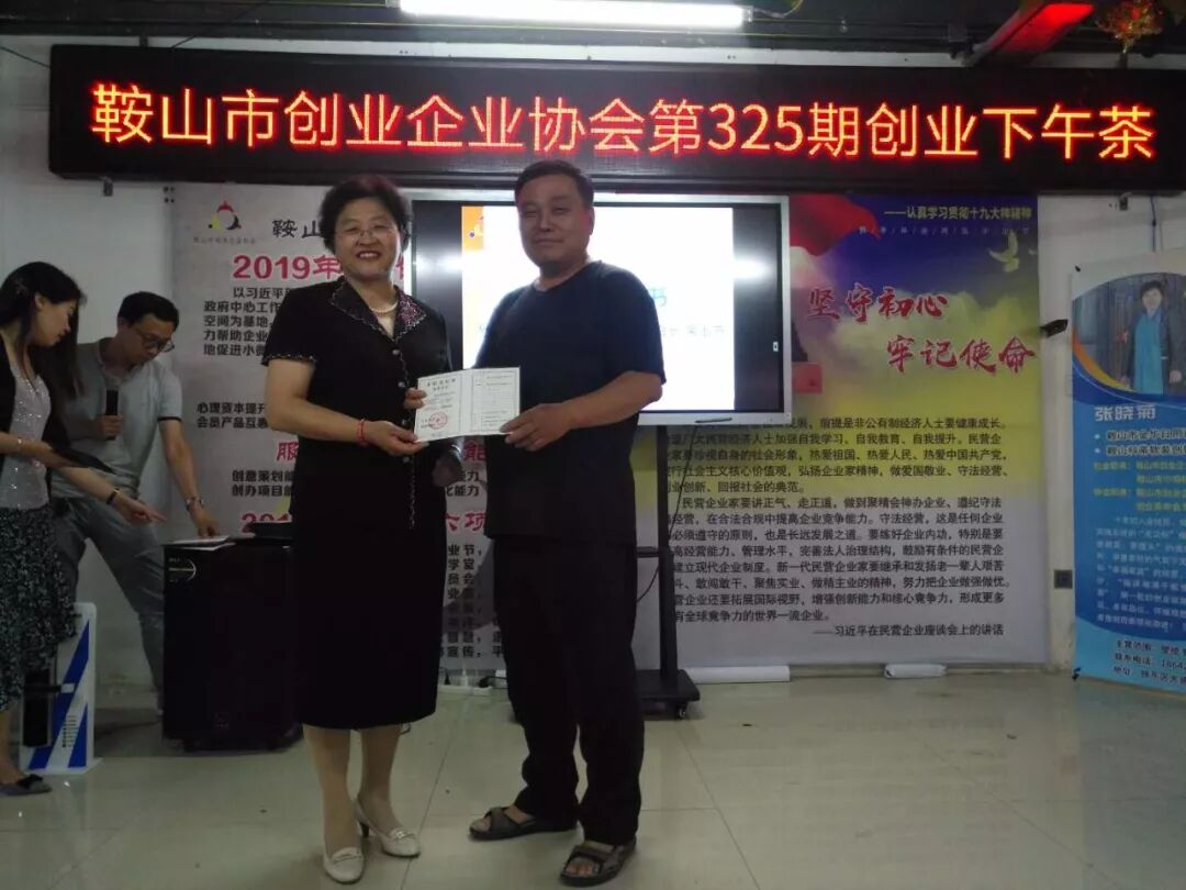 2019年6月27日鞍山市创业企业协会第325期创业下午茶在协会举行,参加本次的下午茶的人员有张立新,申建军,李洪宽,赵立华,魏占林,