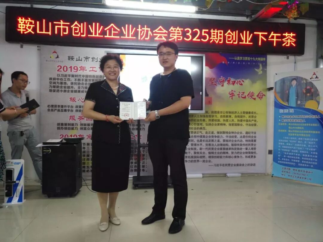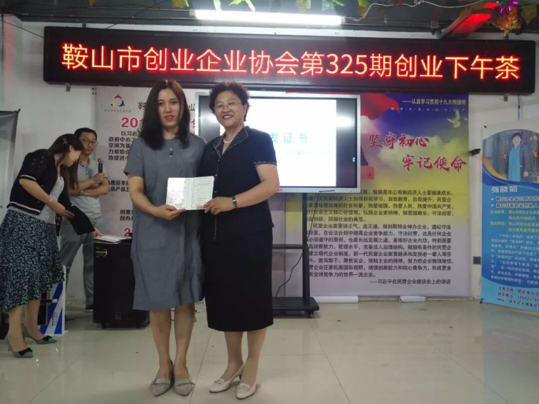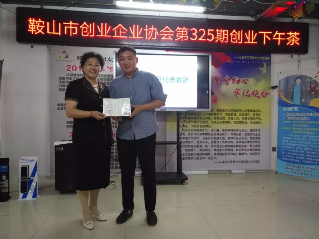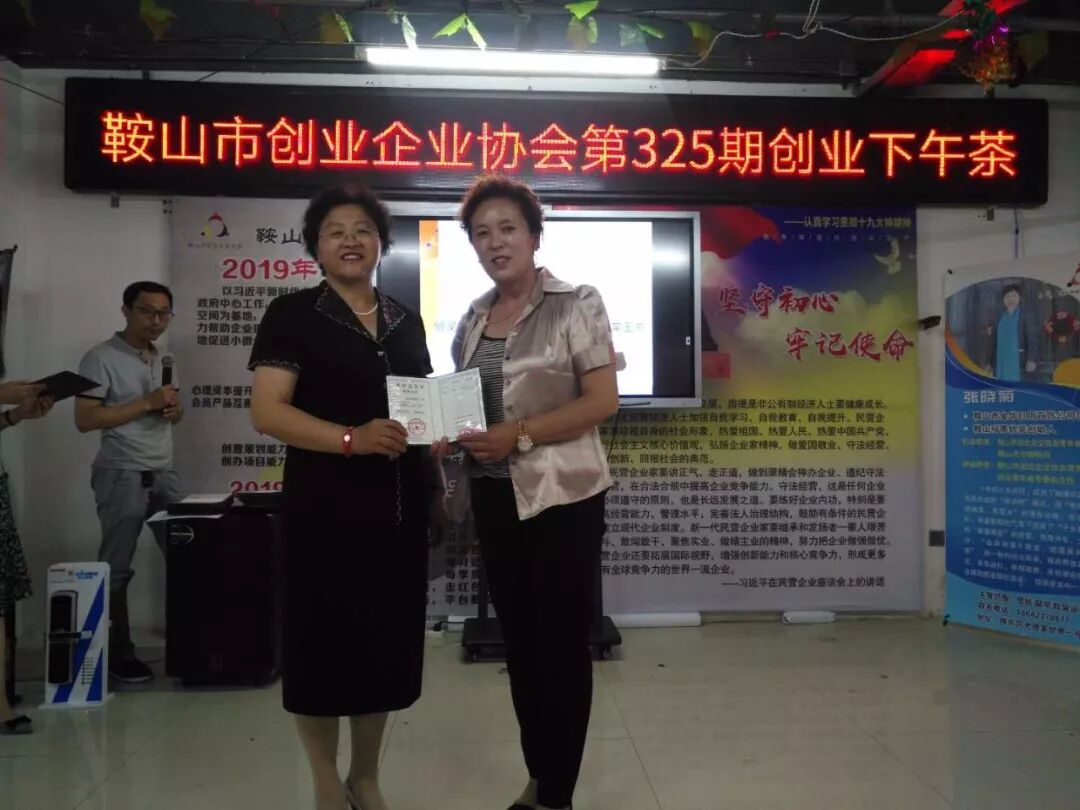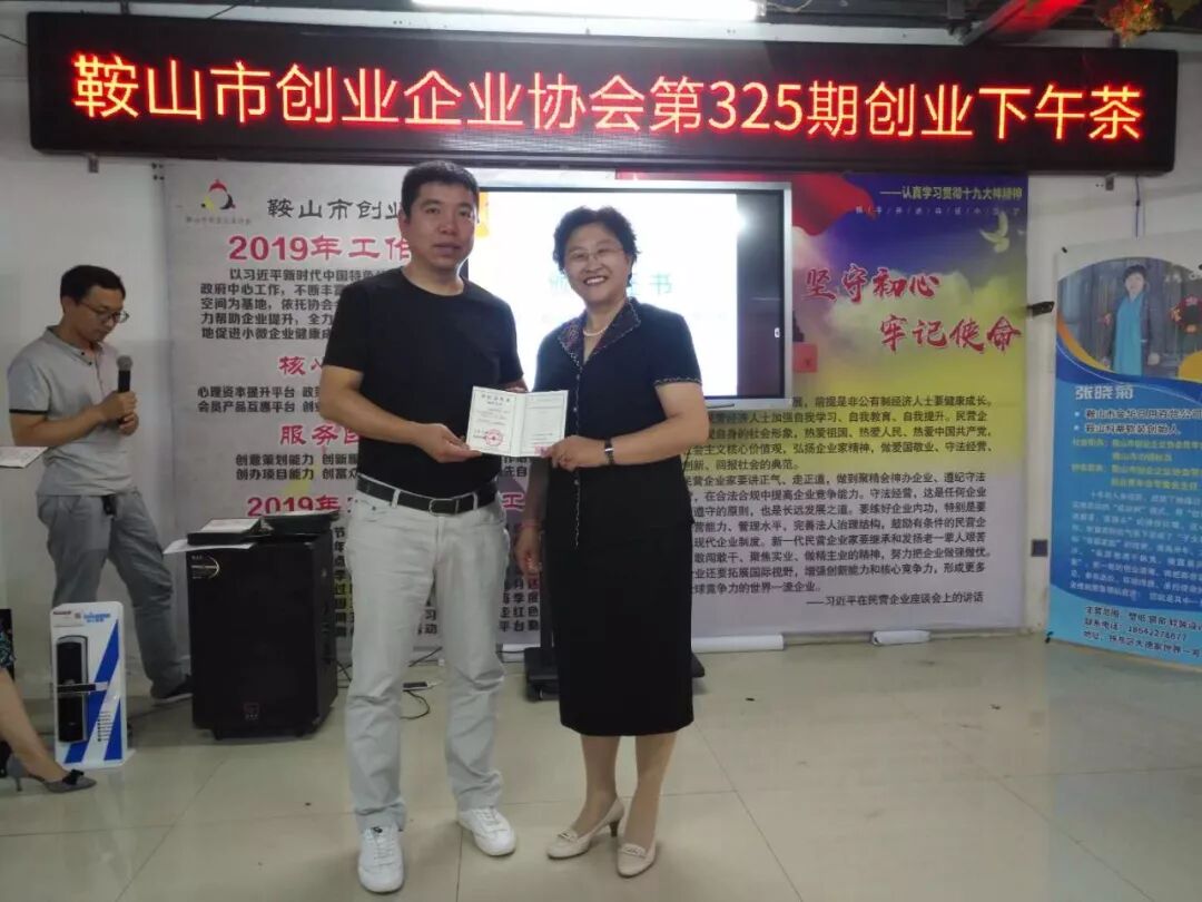 2019年6月27日鞍山市创业企业协会第325期创业下午茶在协会举行,参加本次的下午茶的人员有张立新,申建军,李洪宽,赵立华,魏占林,