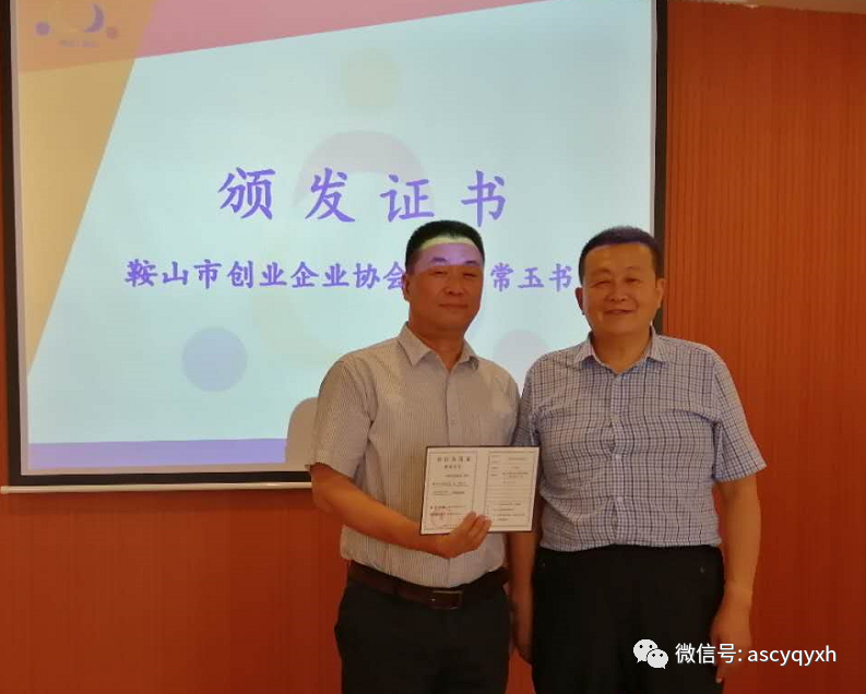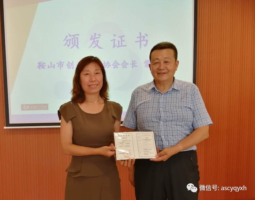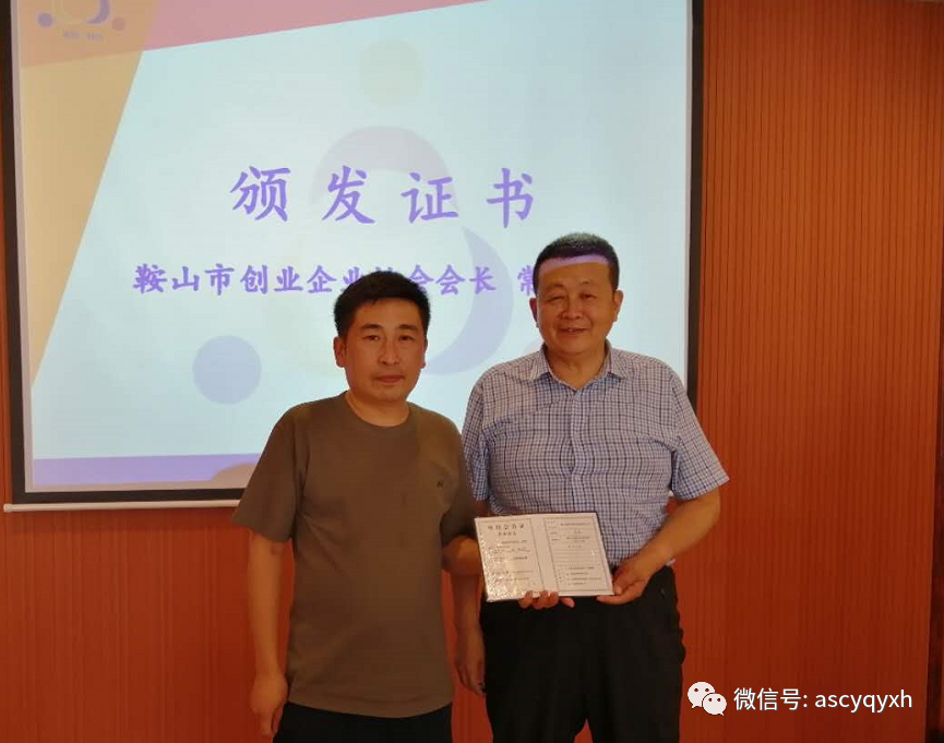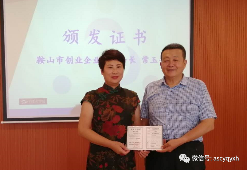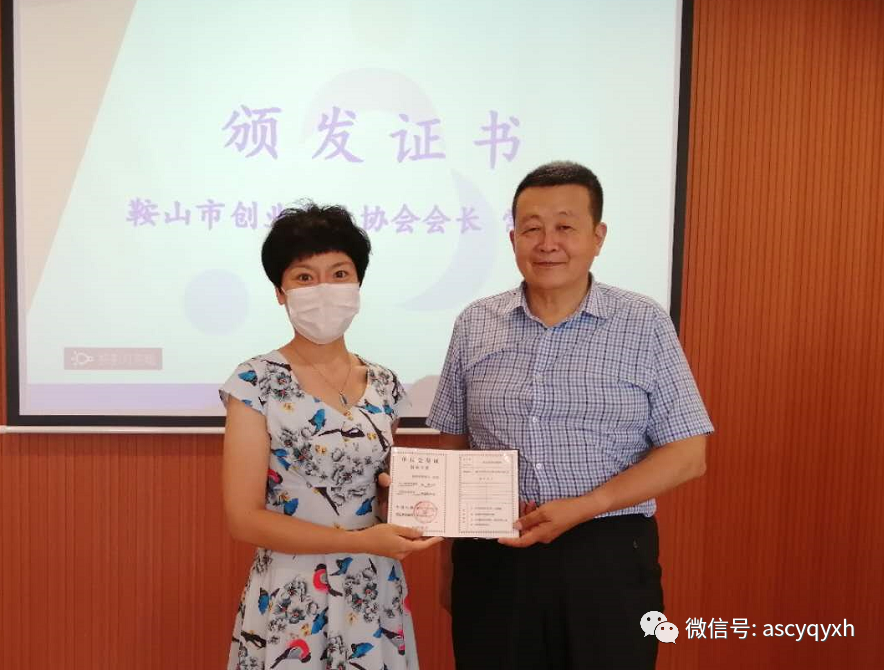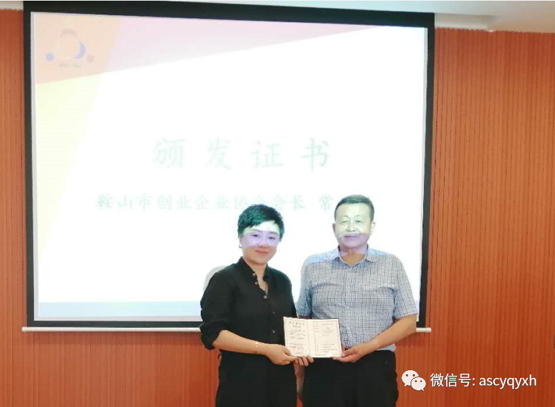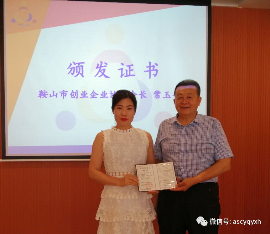 常会长为鞍山市腾鳌特区鞍腾冶金实业有限公司杨丽英颁发会员证书