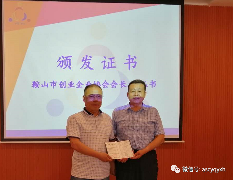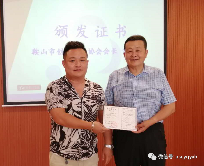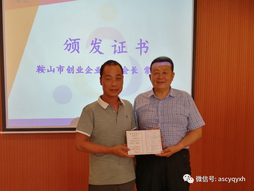 常会长为鞍山煌佳佰特电梯有限公司夏振颁发会员证书