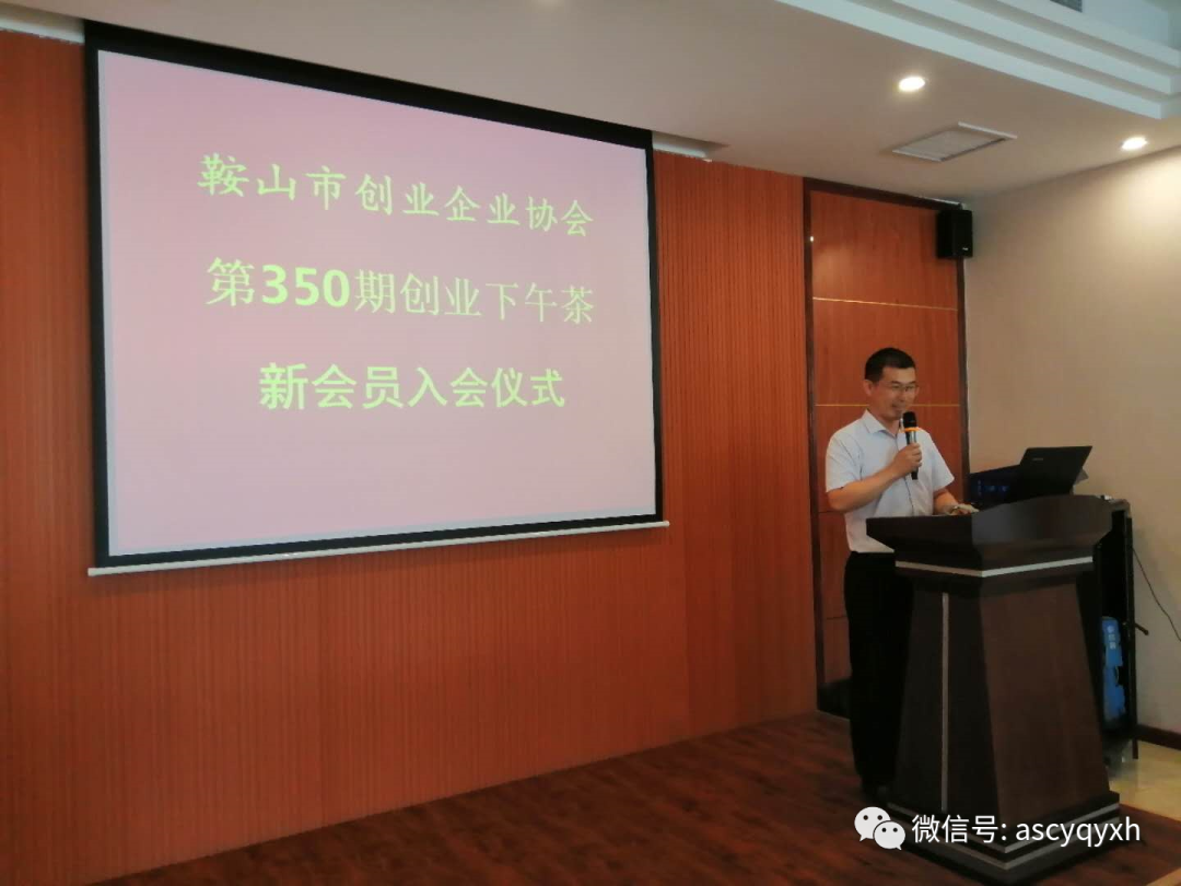2020年7月30日下午,鞍山创业企业协在鞍山铁西金融服务中心一楼会议室举办了第350期“下午茶”活动。活动内容是:新会员入会仪式。参加人员有协会会长常玉书、驻会人员和老会员李洪宽、肇俊威、贺丹及新会员叶会森等30余人。