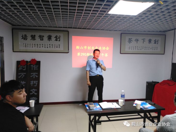 2018年6月14日鞍山市创业企业协会第290期下午茶在协会举行,全新改版的下午茶深受广大会员家人的青睐,通过采取路演的形式,全方位展示企业产品,尤其对新项目的推广宣传效果极佳。同时,加强会员之间深层次的了解,最终实现资源共享、互惠互利、共同发展。参加本次下午茶人员有常玉书,姜科,刘强,蒋春燕,董治涛,崔均伟,赵立华,崔均伟,王凤彦,李洪宽,刘波,张波,孙公展,高威,车菲,翟丙侠,张克清,雷建来,汤海航,褚雷,张留纯,刘奇,曲德润