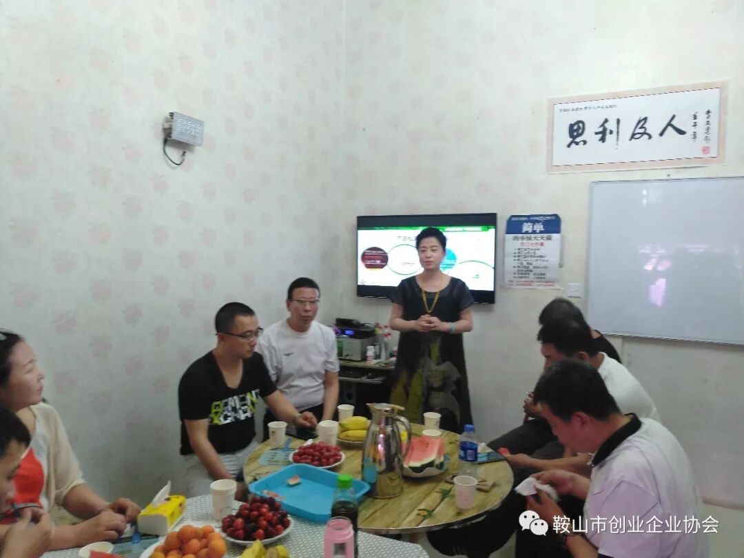于秀红在向家人介绍自己的企业并向大家介绍无限极的产品