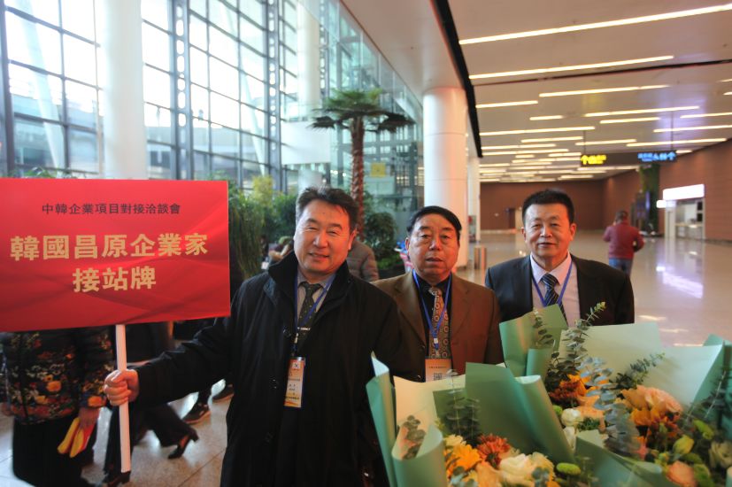 中方接机人员与韩国企业家代表团在机场合影