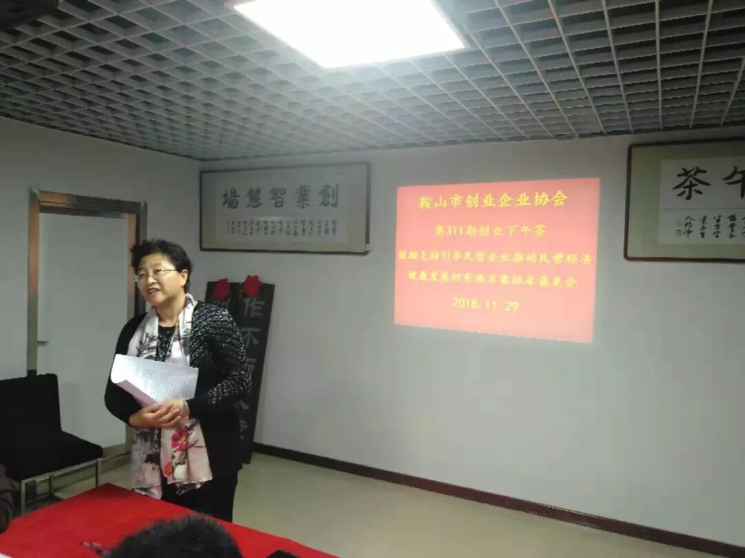 2018年11月29日鞍山市创业企业协会第311期下午茶在协会举行,本次下午茶是市工信委组织《鼓励支持引导民营企业推动民营经济健康发展的实施方案》征求意见会,参加本次下午茶的人员有市工信委领导王玉贵,创业协会常玉书,张立新,魏智,李洪宽,葛书翰,王庆莹,赵立华,潘珑天,李春华