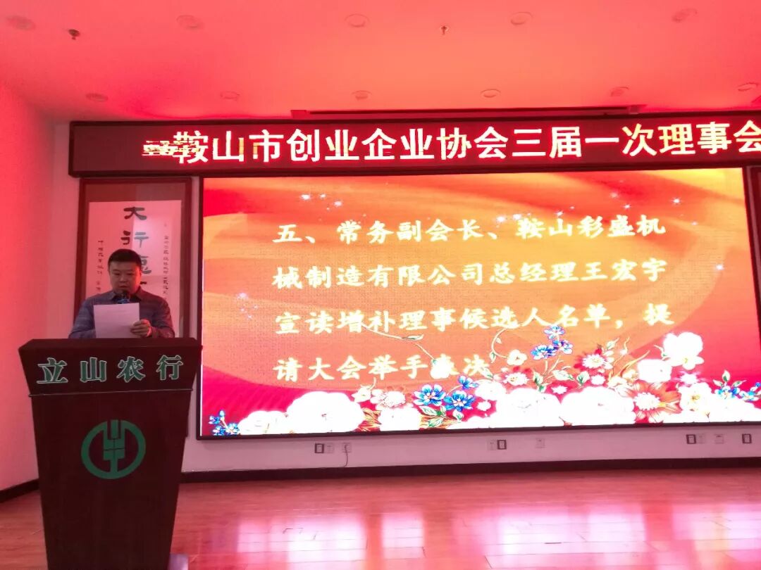 常务副会长、鞍山彩盛机械制造有限公司总经理王宏宇宣读增补理事候选人名单,提请大会举手表决