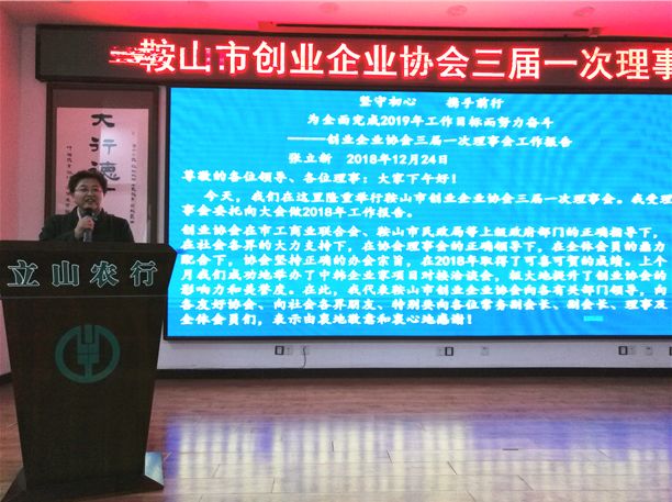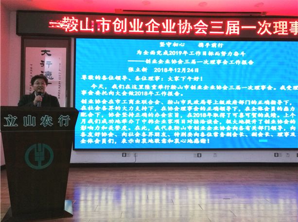 2018年12月24日下午2点到4点鞍山市创业企业协会三届一次理事会在立山农行3楼会议室胜利召开