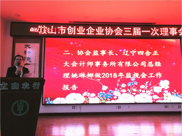 协会监事长、辽宁四合正大会计师事务所有限公司总经理姚琳娜做2018年监事会工作报告
