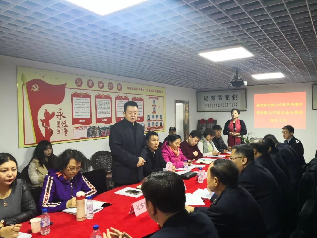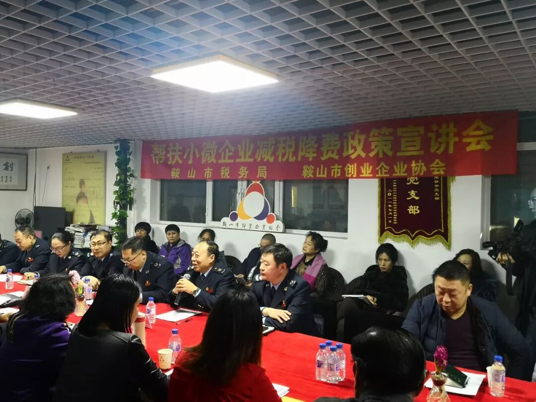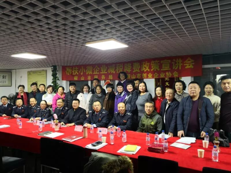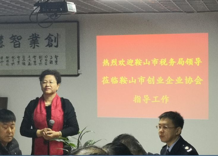 2019年1月30日上午9点30分鞍山市税务局领率队到创业企业协会宣讲减税降费新政策。参加本次活动的人员有鞍山市税务局党委书记、局长王旭,鞍山市税务局党委委员、副局长赵国发,铁东区税务局党委书记、局长刘焕军,税务局纳税服务中心主任蔡学增,铁东区税务局副局长唐开新及市税务局办公室徐红等九位税务工作人员,鞍山市创业企业协会会长常与书,鞍山市创业企业协会秘书长张立新,王凤彦,孙乃昌,申建军,王庆莹,汤晓光,包素芹,李洪宽,崔钧伟,石军,董秀娟,李艳明,蔡广东,贺亦芳,李军,田凤娇,王新生,黄磊,刘实,姜科,蒋春燕,孟阳,董治涛