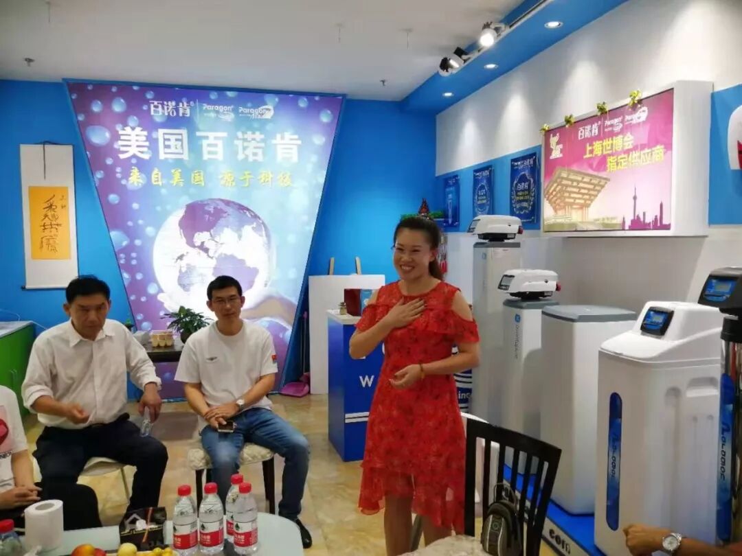 美国百诺肯净水旗舰店董金玲在向家人介绍自己的企业