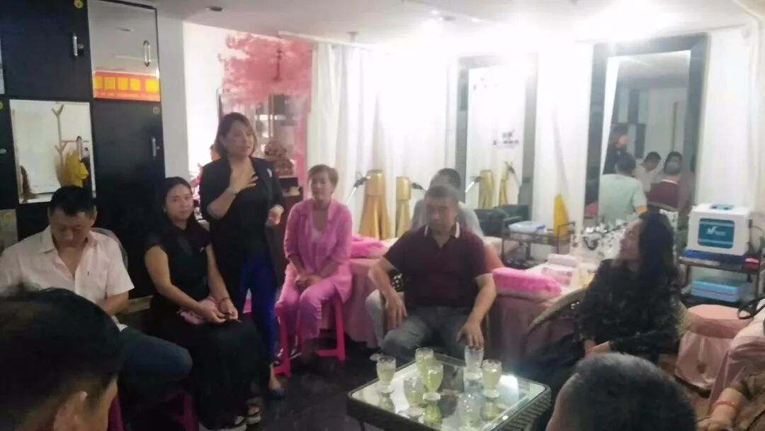 拾里桃花美容养生会馆董金玲在向家人介绍自己的企业